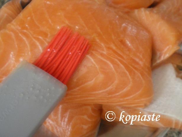Pour lemon juice and honey over salmon and a spoonful of olive oil. Season with salt and pepper.