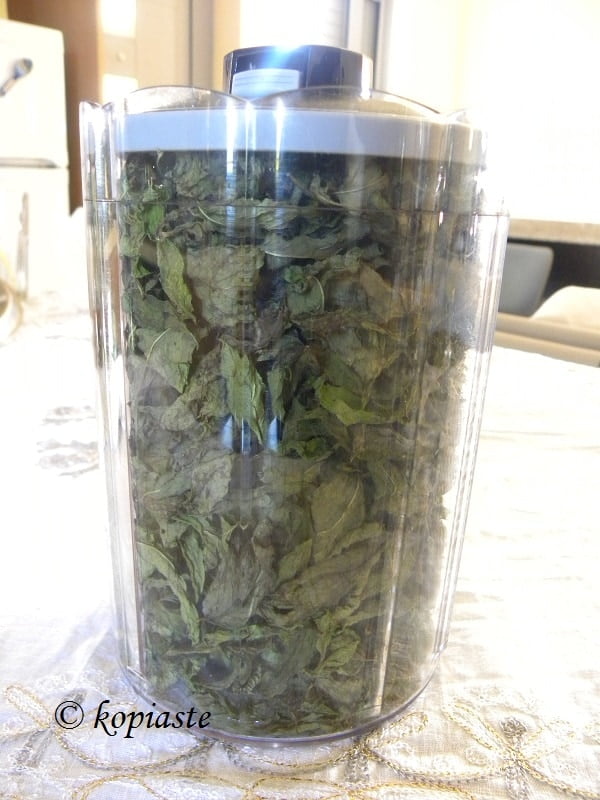 Use the preserved leaves in recipes which require mint.