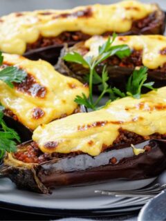 Melitzanosalata is a traditional Greek vegan and gluten-free dip / appetizer made with eggplants which have been charred over charcoal or over an open flame, until the skin blisters, to get a smoky taste.