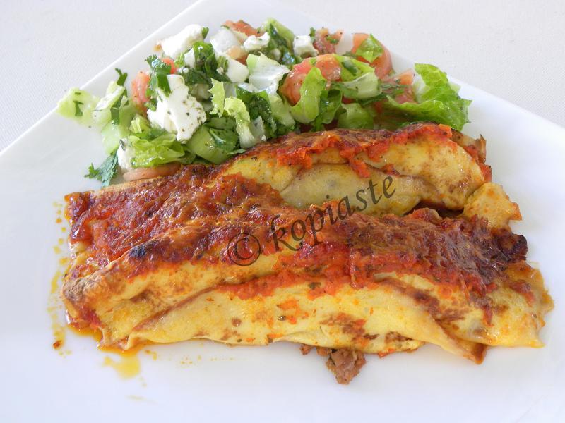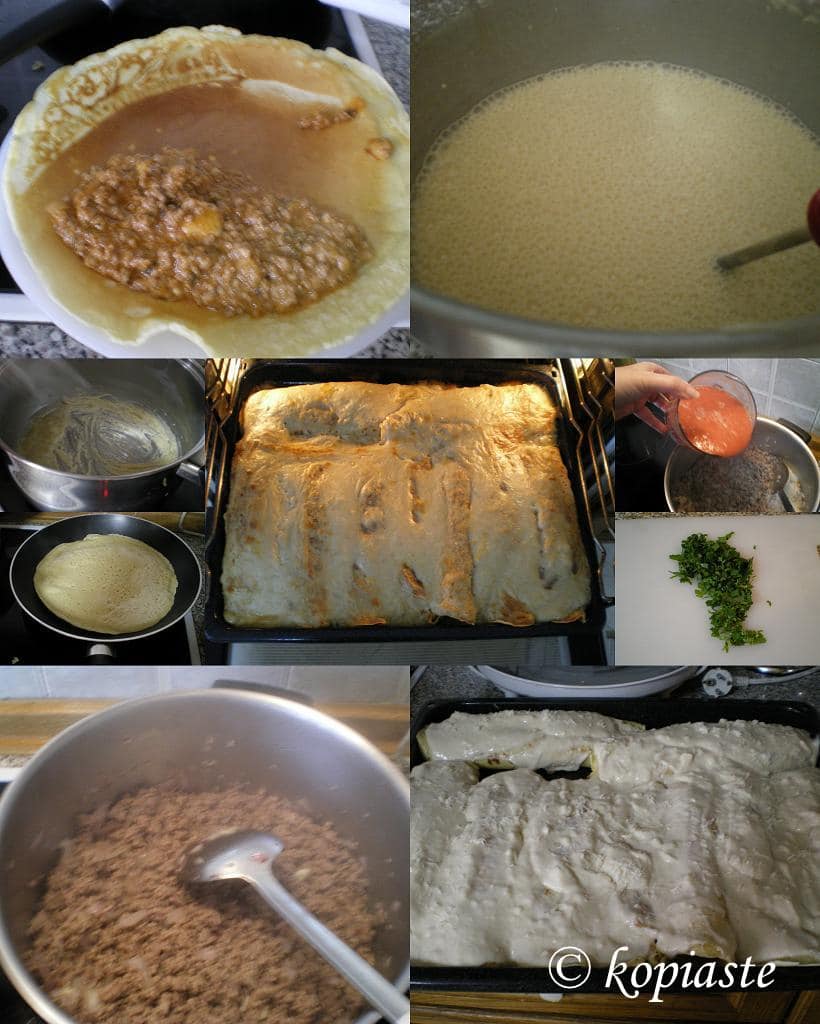 Cannellonia with Crepes and meat sauce, the Cypriot way with Bechamel