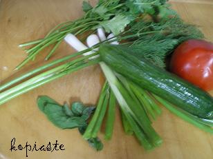 Wash and peel vegetables, wash and cut herbs and mix all ingredients together.
