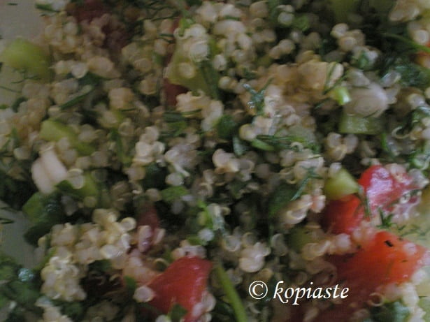 After receiving the package sent to me by my friend Pixie, of You say tomahto, I say tomayto, I made this quinoa salad.