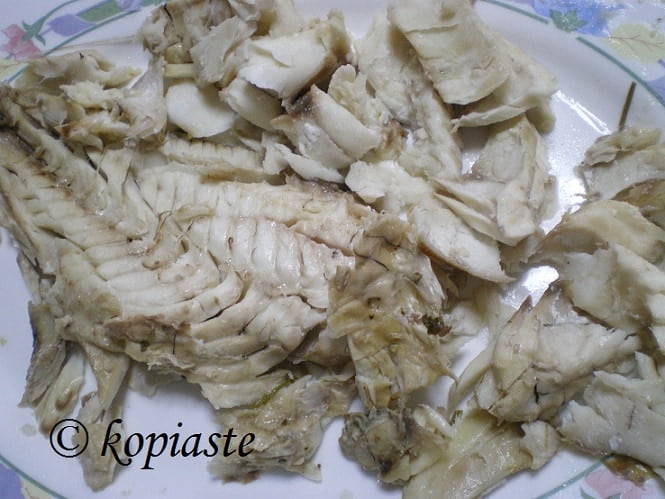 1. Scale, gut and wash the fish. (Scaling is not necessary as the scales will stick on the crust and the skin and will be discarded).