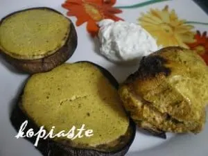 I think the next time I shall make them I shall add the marinade-yoghurt mixture on top and bake them only for five minutes so that it is still creamy. I tested one eggplant the way I wanted to make it originally and that was good as well so I might make them this way again soon.