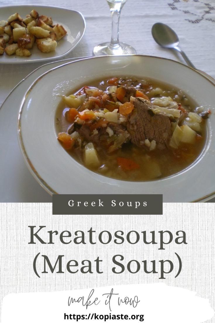 If you are vegan, you can also make the same soup without the meat. It is called Hortosoupa. Also see the recipe for fish soup, which is called Psarosoupa.