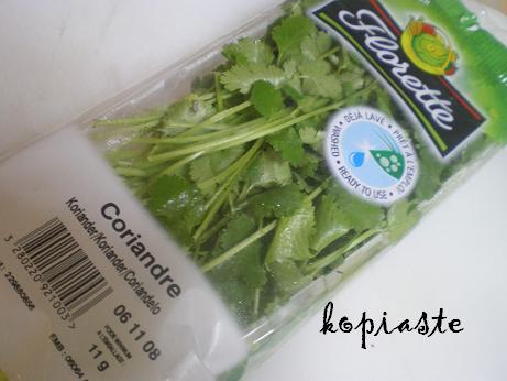 So on Tuesday, early in the morning we went again to the supermarket and bought a lot of things which were new to me such as: red potatoes, chorizo, framboize preserves, lots of Swiss chocolates, Gruyere cheese, fruit syrup, wines, harissa pepper, a French salad dressing with herbs, cakes and biscuits and a couple of other things which were not to eat. My only regret was that on the first day there was lot of fresh coriander and that morning I found only the last package which was only 11 gr.