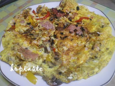 In the evening we made some omelet with onion, mushrooms and bell peppers and harissa pepper and put some saucisson in and both recipes were delicious.