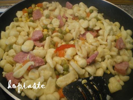 (and I boiled the pasta for 2 minutes in the water I had cooked the saucisson in, then I drained them and put them in the frying pan with butter).
