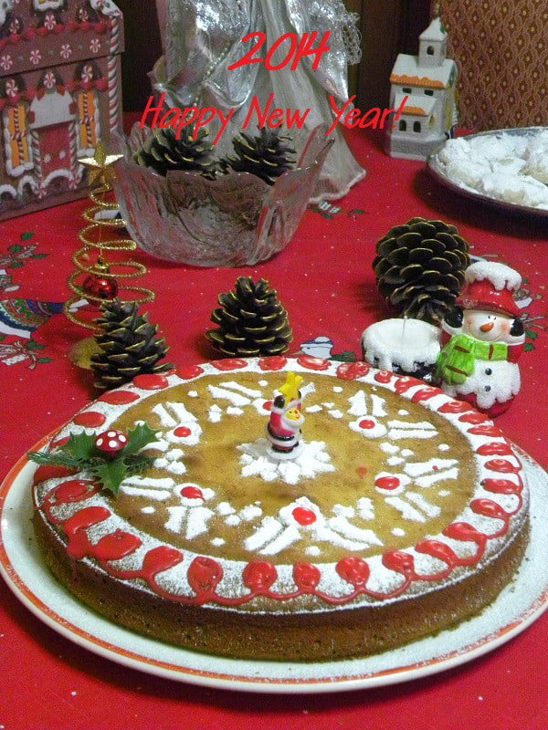 This year’s Vassilopita was made without any glaze on top. The only difference is that I used a special butter from Corfu island, called “voutyro Kerkyras” (50% with cow’s milk & 50% sheep and goat milk) and just some icing sugar on top!