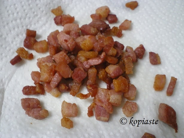 - Meanwhile, in a sautéing pan, sauté the pancetta and remove to kitchen towel.