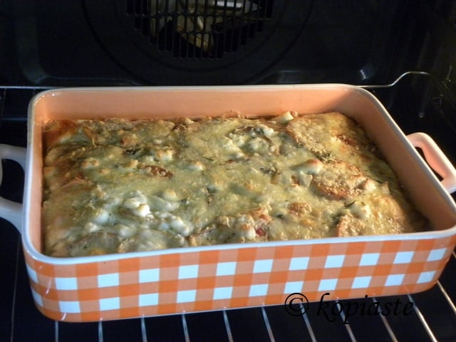 When preparing the recipe I did not have enough cheese, otherwise I would have added an extra layer of thin slices of anthotyro between the potatoes and courgettes.