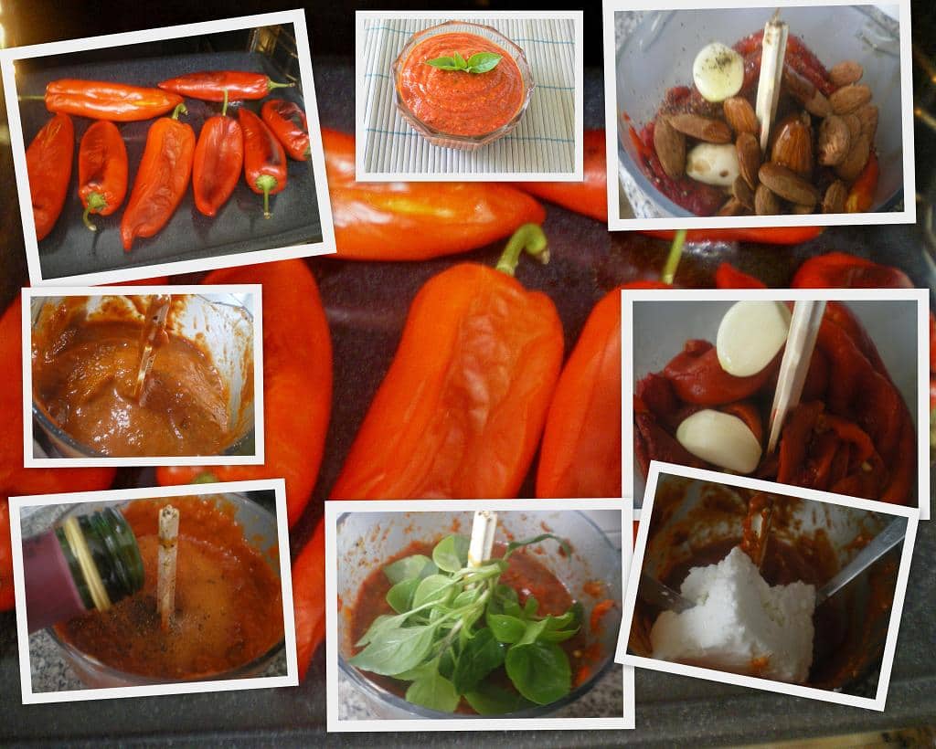 Put the peppers, garlic and almonds in a food processor and puree.