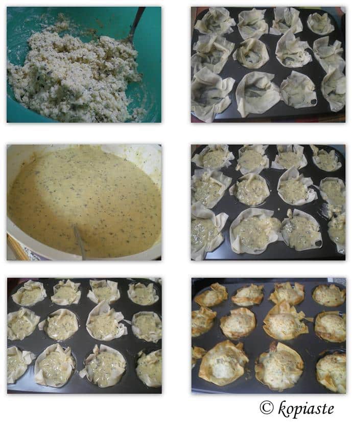 The idea of lining the muffin tin with phyllo was an original idea of mine several years ago, when I made a Sweet tyropita (Cheese Pie).
