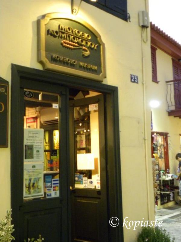 The museum is on the first floor of a building on 25 Staikopoulou Street. The ground floor is a workshop making, repairing and selling worry beads. Some well-made copies of these can be purchased.