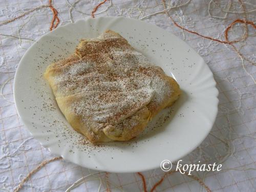 I also made a Bougatsa Nistisimi. The phyllo in the traditional recipe is with butter so I made it with olive oil and the cream with is with milk and eggs were substituted with a semolina cream made with coconut milk.