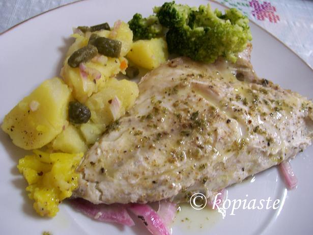 In Greece we love fish recipes and most of them I keep rather simple. Fresh fish is wonderful seasoned with only salt, pepper and oregano and then grilled or broiled.  It is then served with “ladolemono” sauce.