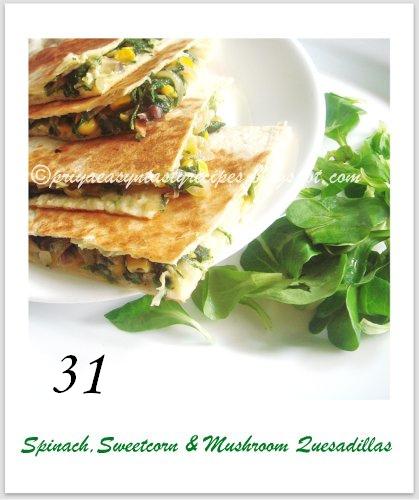 c) Another recipe by Priya is a twist to Mexican Quesadillas, filled with Spinach, Sweet Corn and Mushrooms.