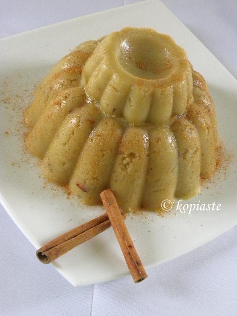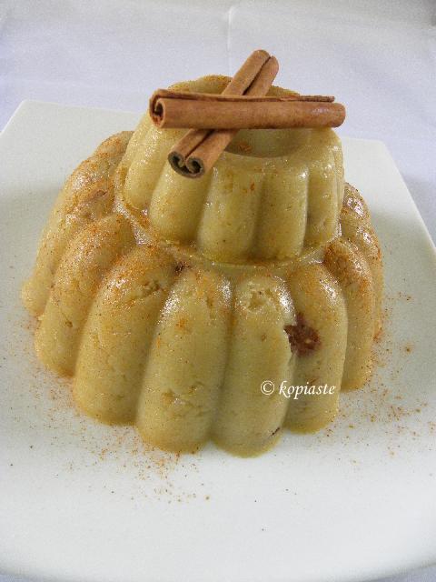 Unmold in a platter and serve with a sprinkle of cinnamon on top.