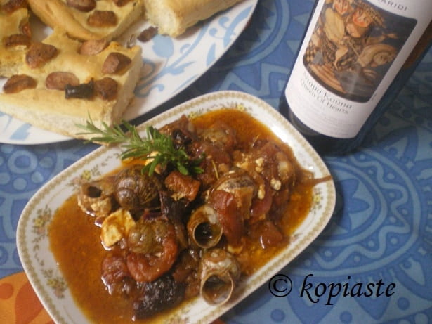 Saliggaria Stiffado Saganaki (Stewed Snails)