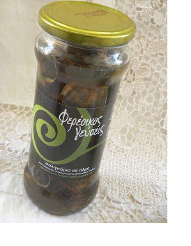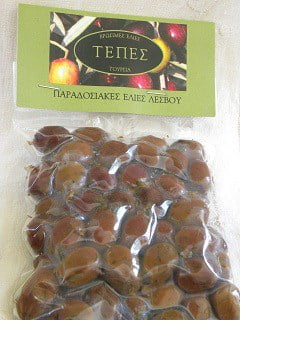 Brined Garlicky Olives, without additives or preservatives, from Gera, a beautiful and rich area on the island of Lesvos. Mr Panagiotis Karavatakis’s family farm cultivates two thousand age-old olive trees with a constantly increasing production, placing more emphasis on the olive fruit itself.