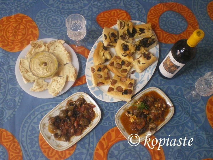 I used the olives to make Lagana as well as in the hoummous. Recipes will be posted separately.