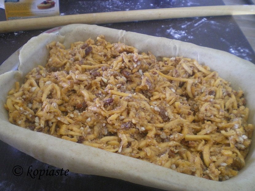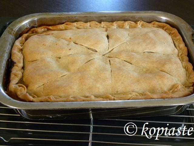 In the Cypriot ones we add rice or bulgur to absorb the juices while baking. Instead of adding rice, I added ground biscuits which added an additional lovely taste to the filling. To make the phyllo I did not have enough all purpose flour so I added some whole meal flour as well but you can make it with with 600 grams all purpose flour only.