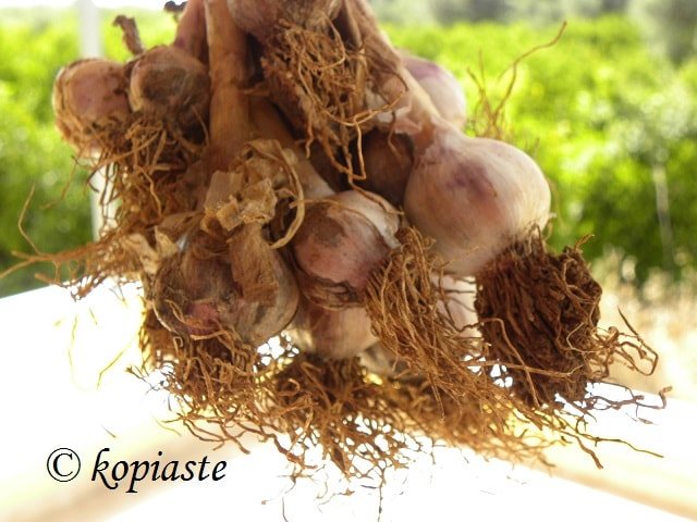We harvested our garlic at the end of May but the heads were not very big but still they were great. As usual I roasted some garlic, which I always have some in the refrigerator for a milder taste to my dishes and the remaining is hanging in our basement.