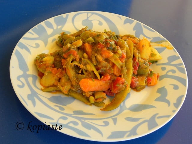 Stove top Tourlou-Tourlou me Fassalokia (Vegetable Medley with Green Beans), recipe by Ivy