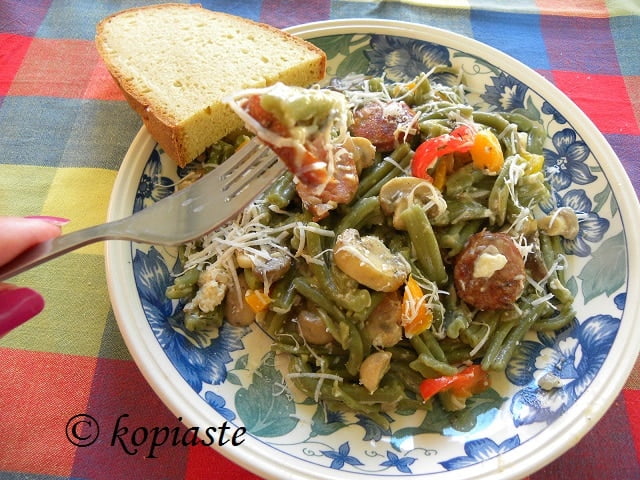 You must be wondering how can sausages and fatty cheese be healthy? Well my answer is that these should not be excluded from our diet. These foods are part of the Mediterranean Diet and we should not forget that these are what our parents and grandparents ate. There were no low-fat products then and heart attacks were more rare than today. New studies show that adding some cholesterol in our diet is not as bad as we used to believe. The amount of sausage and cheeses used is not that much considering that this amount is for 6 – 7 portions. What we need is more exercise to burn the fat.