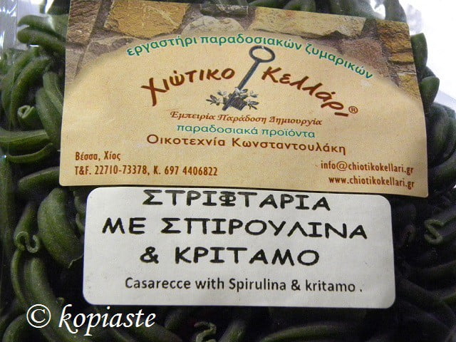 Today’s recipe has a weird name and many of you may be wondering what stiftaria or casarecce, spirulina and kritamo may be. When I added the picture on Facebook, even Greeks did not know what this was about.